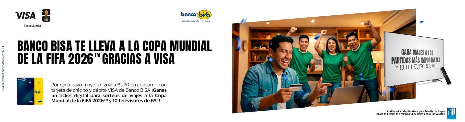 Banco BISA te lleva a la Copa Mundial de la FIFA 2026, en colaboración con Visa Internacional.